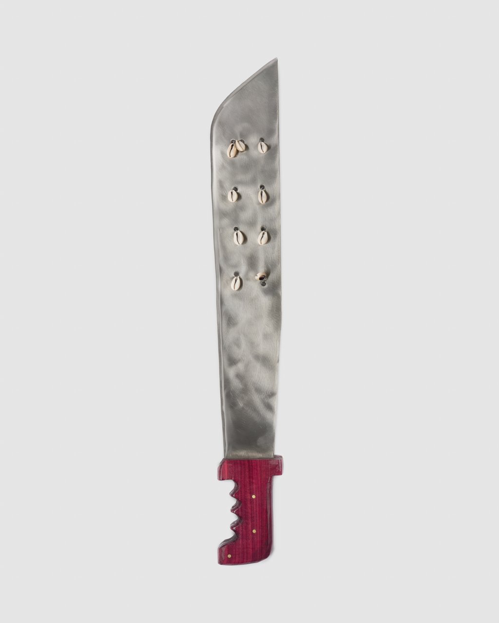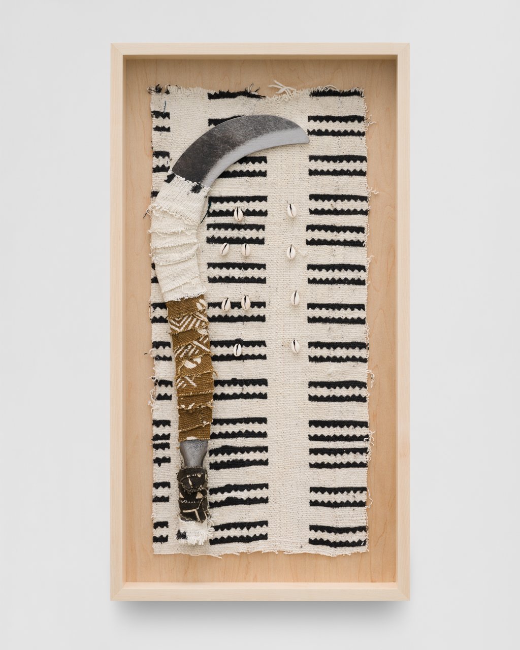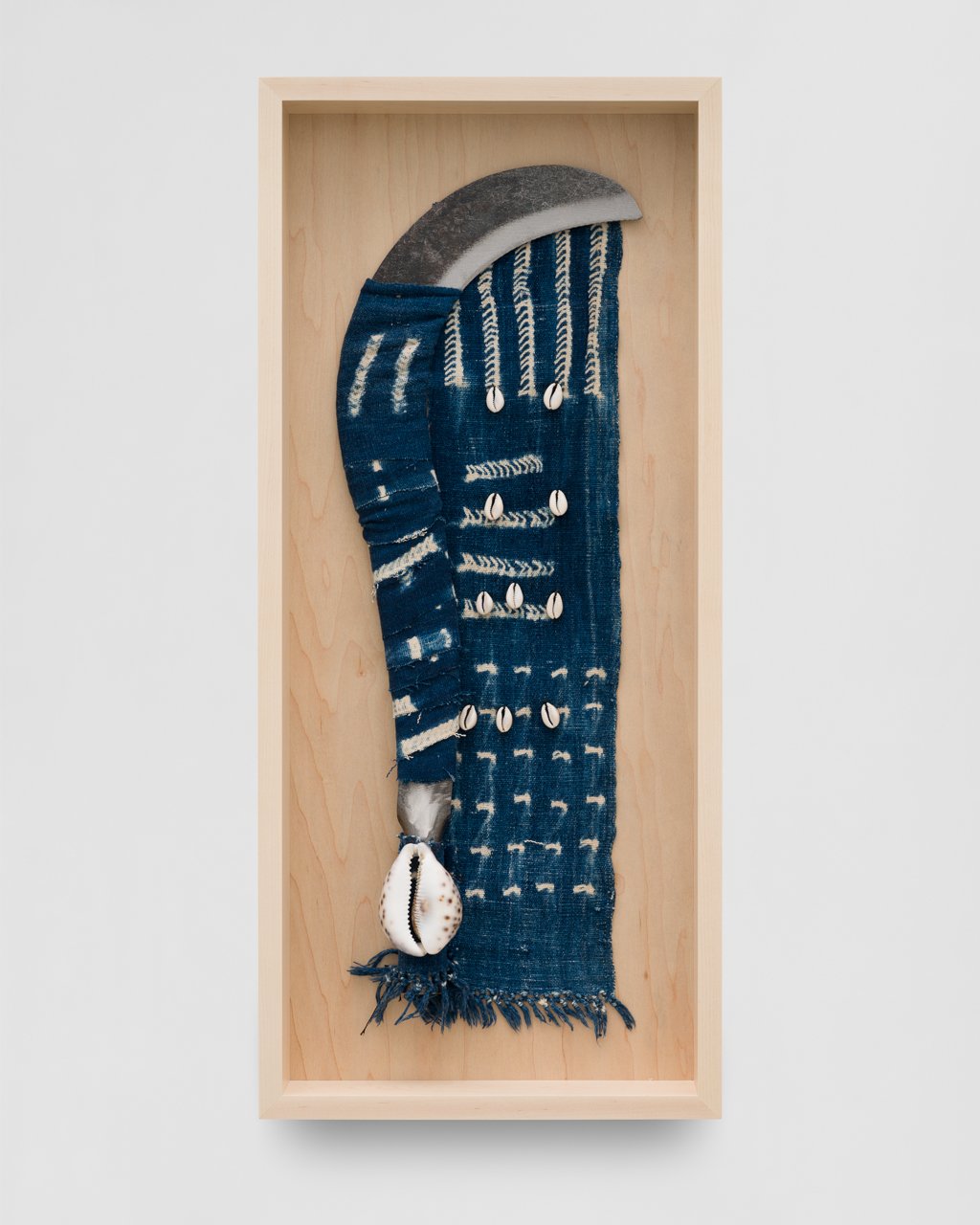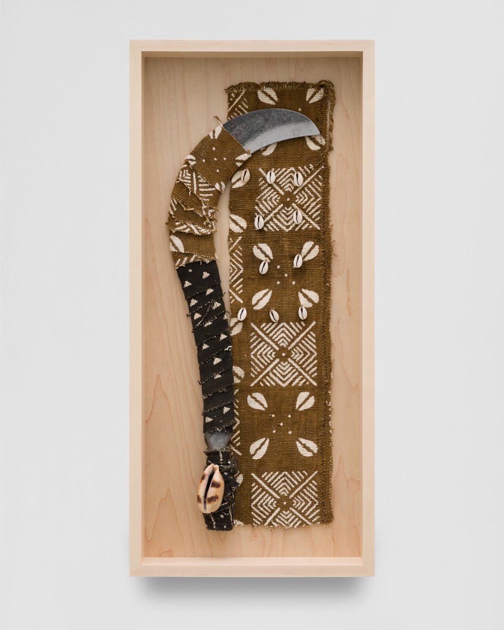 Fusing Malian mud cloth textiles, cowrie shells and metalwork to create what Cullors refers to as “a sanctuary of reflection and empowerment,” the core of the exhibition revolves around the sword of Oya, a spiritual emblem of power, protection and divine justice. Throughout Between the Warp and Weft, Oya's sword transcends its historical significance to address the pressing narrative of our times — the need for protection and reverence for Black women.