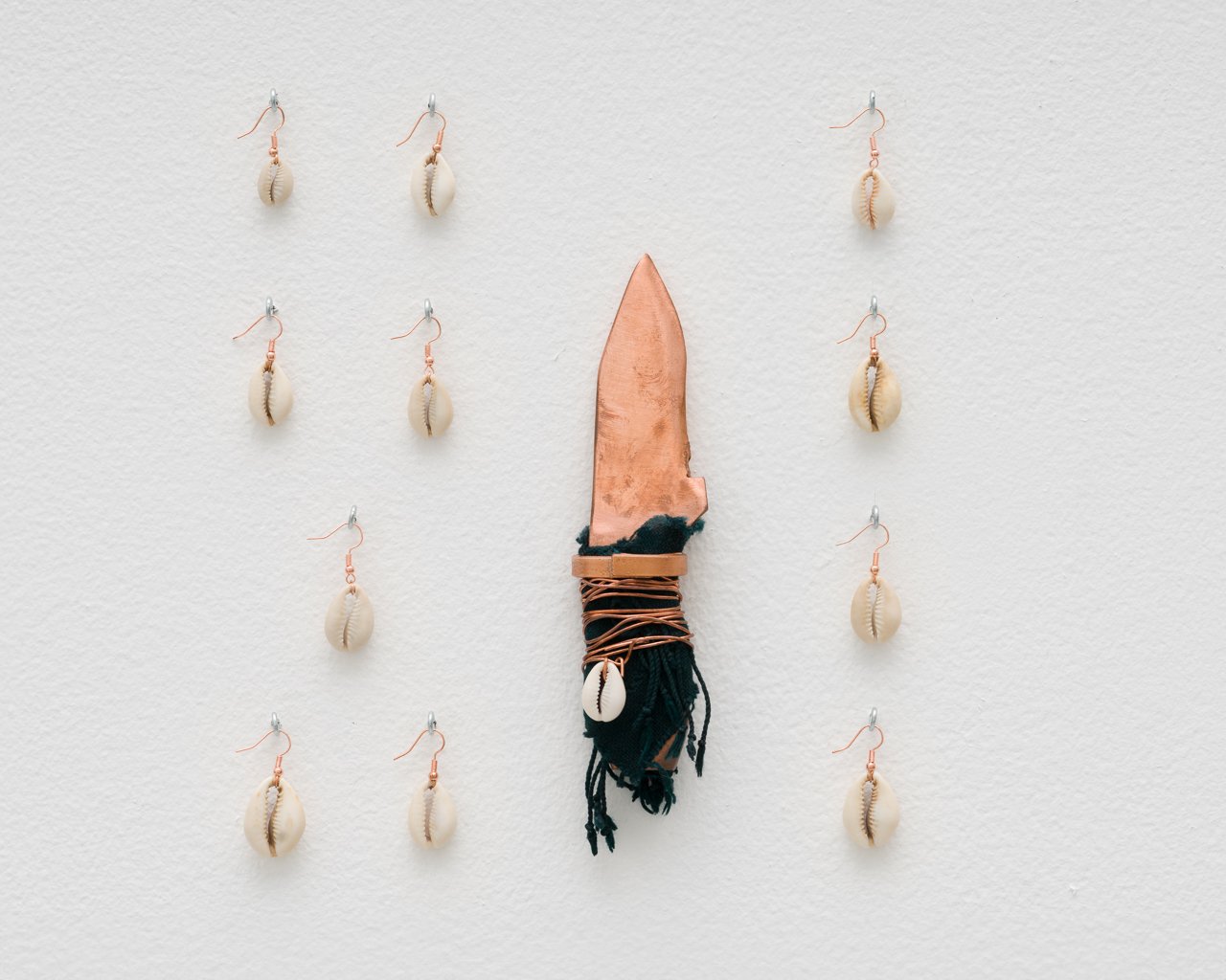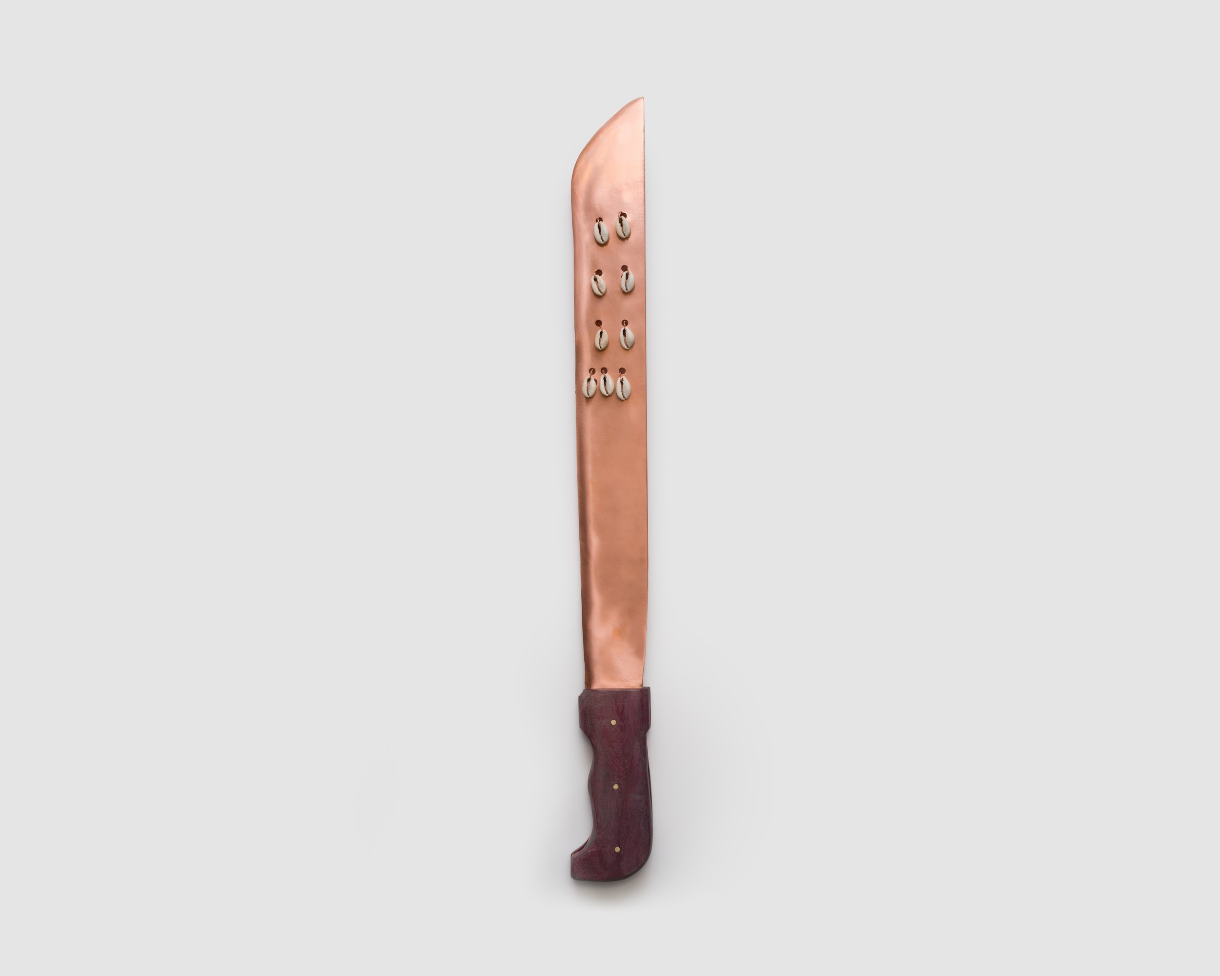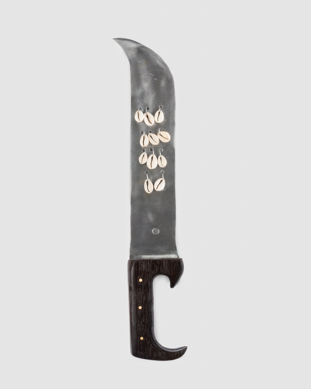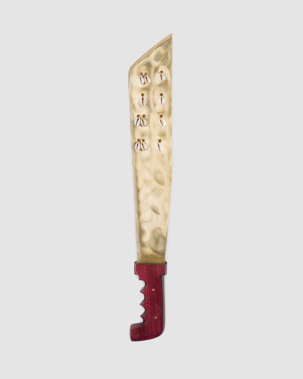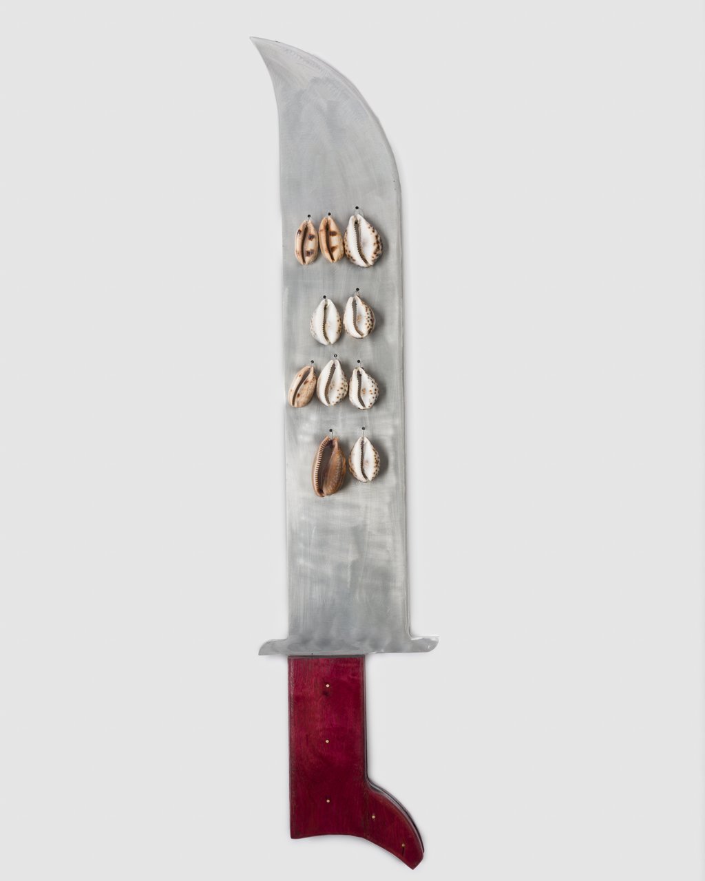 Fusing Malian mud cloth textiles, cowrie shells and metalwork to create what Cullors refers to as “a sanctuary of reflection and empowerment,” the core of the exhibition revolves around the sword of Oya, a spiritual emblem of power, protection and divine justice. Throughout Between the Warp and Weft, Oya's sword transcends its historical significance to address the pressing narrative of our times — the need for protection and reverence for Black women.