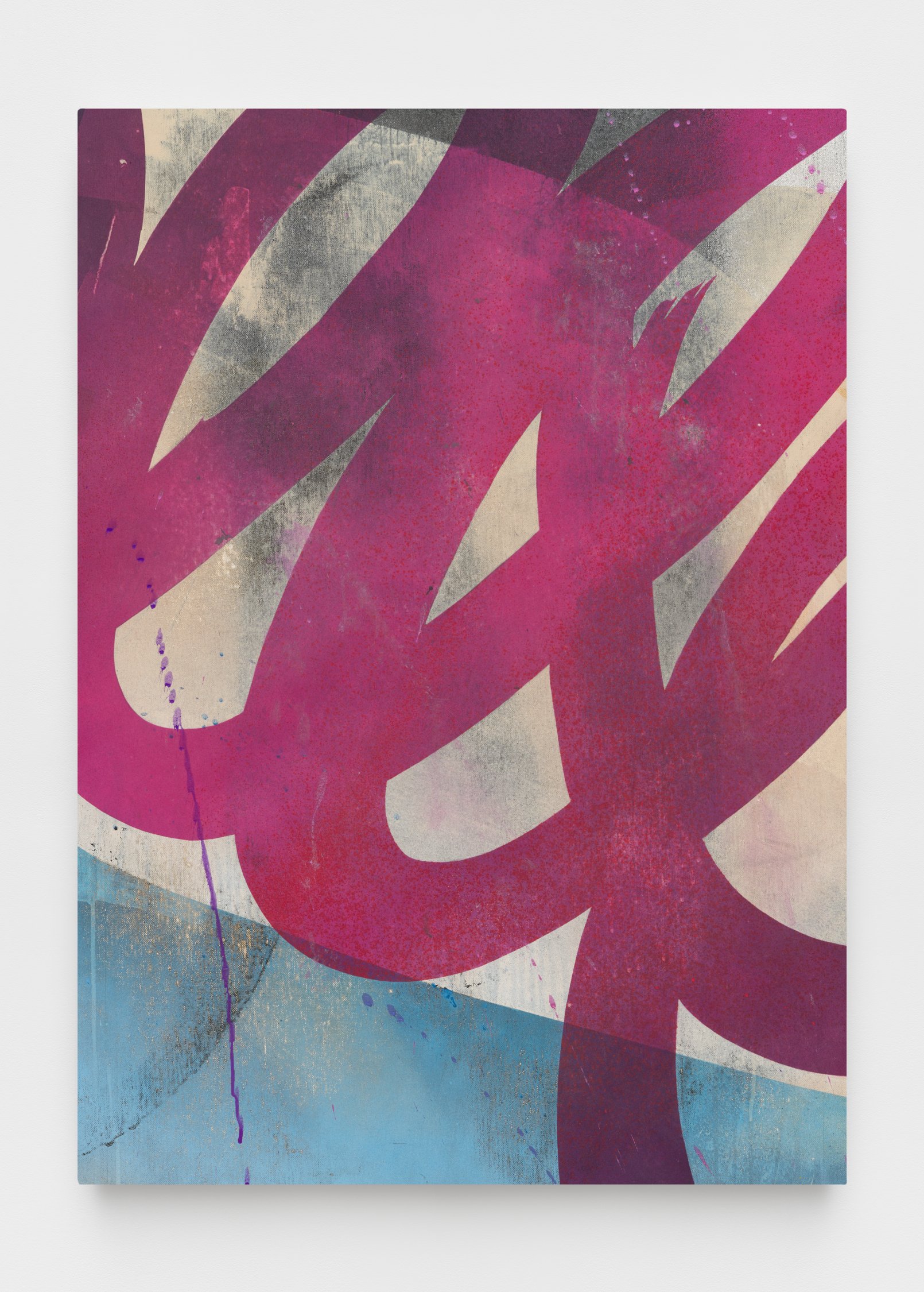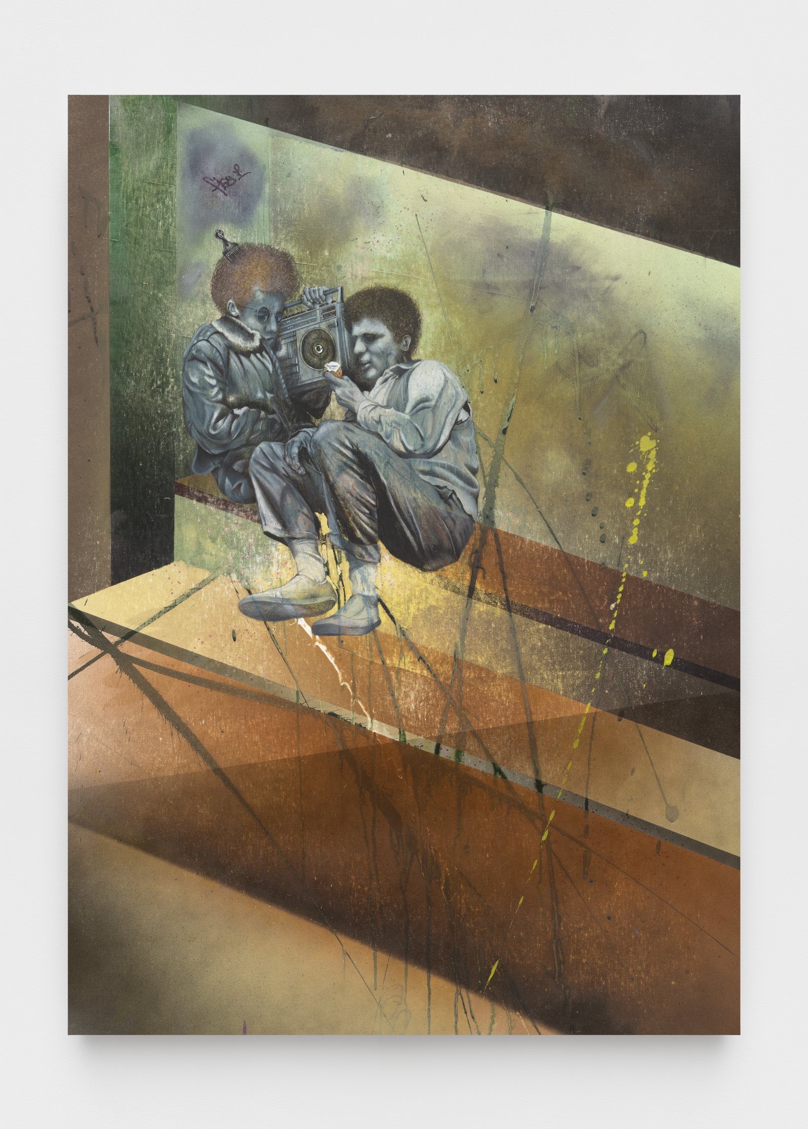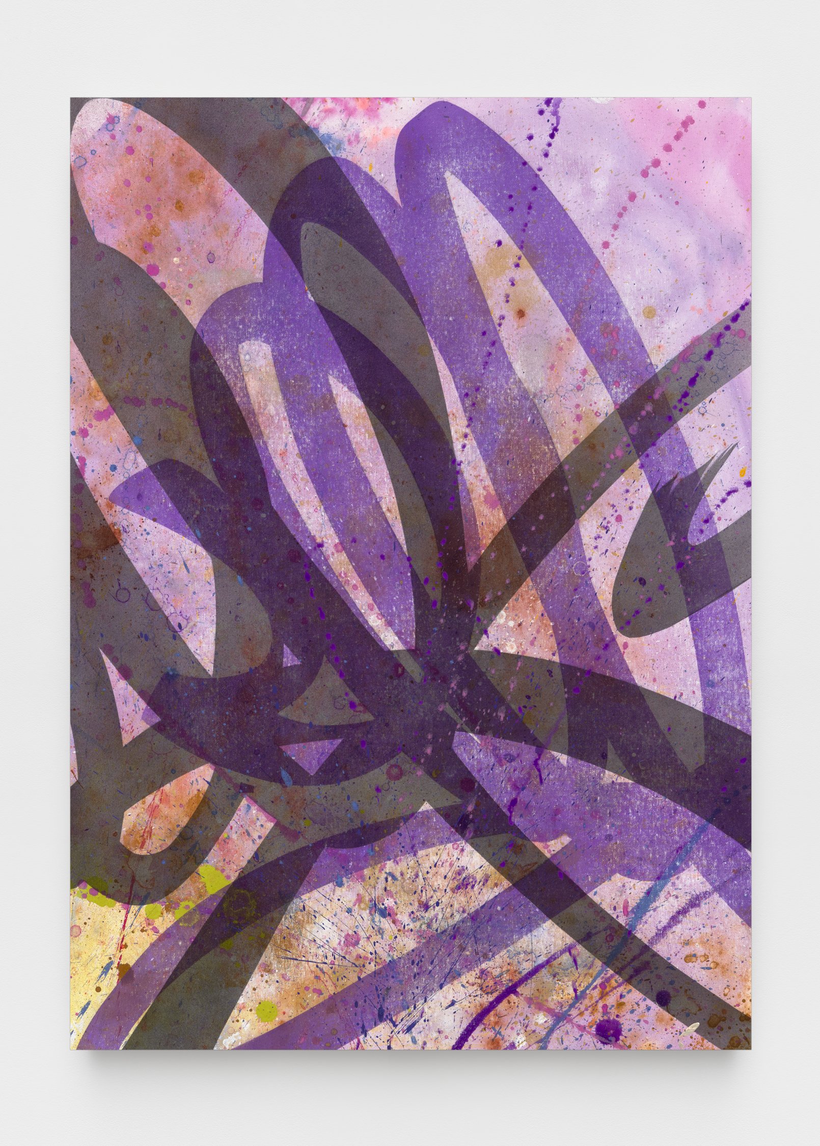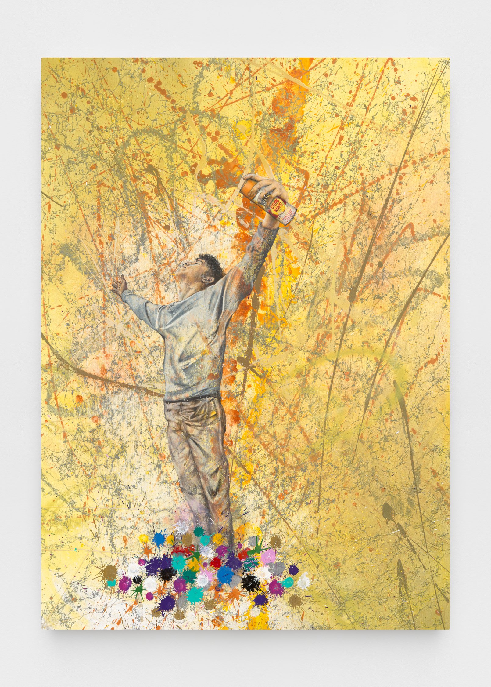 The exhibition will feature a new series of SPIT paintings, deriving their name from the act of priming a paint marker. These works straddle the line between gallery and street, pairing tags and graffiti writing with bold, expressionist painting. Quiñones honors the tools of the artform, using spray paint and paint markers to create layered abstract compositions. On this 50th anniversary, the artist also looks back to his beginnings making art on the run, in one work depicting his own spray cans hidden away in the days when the city was his studio.