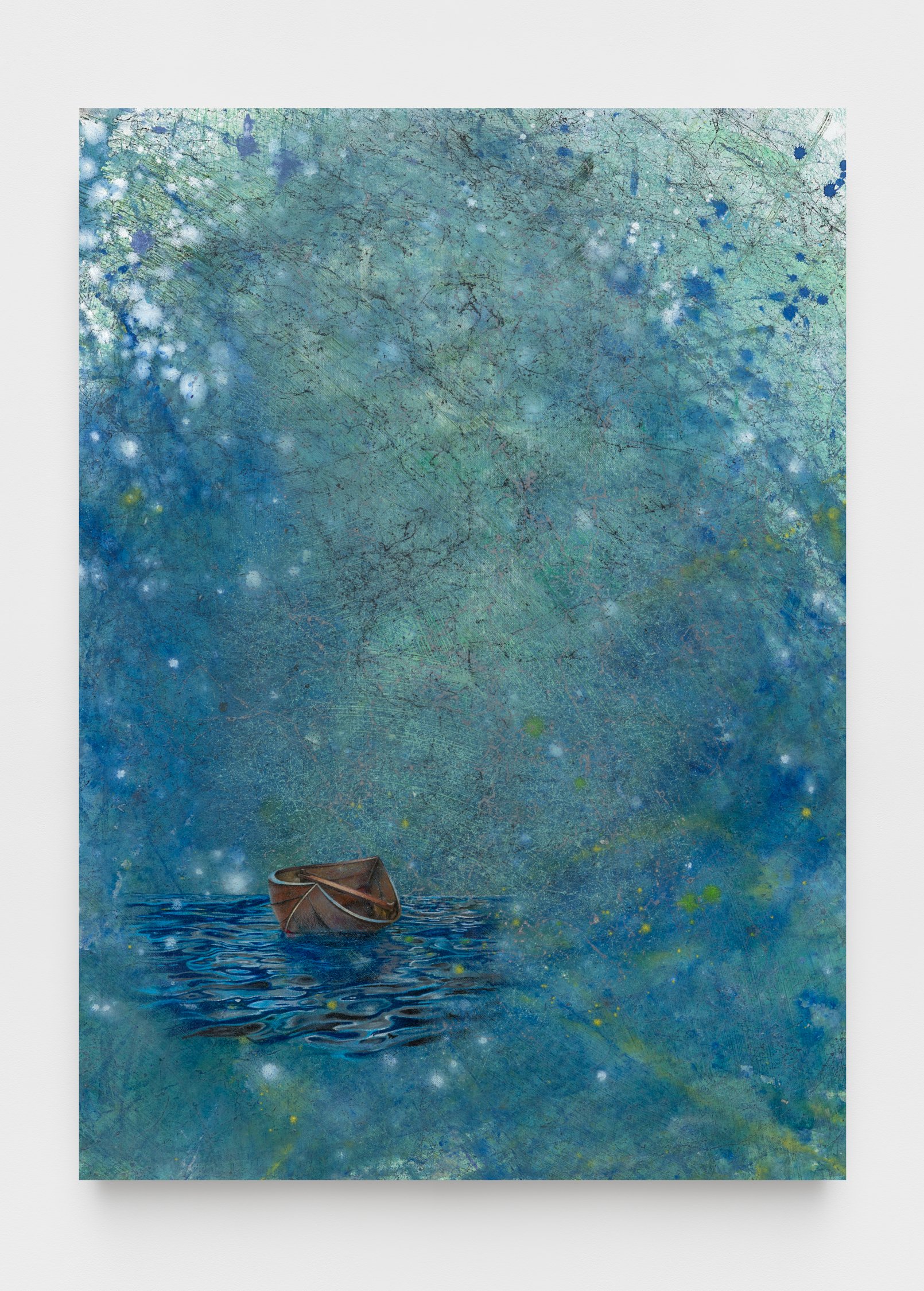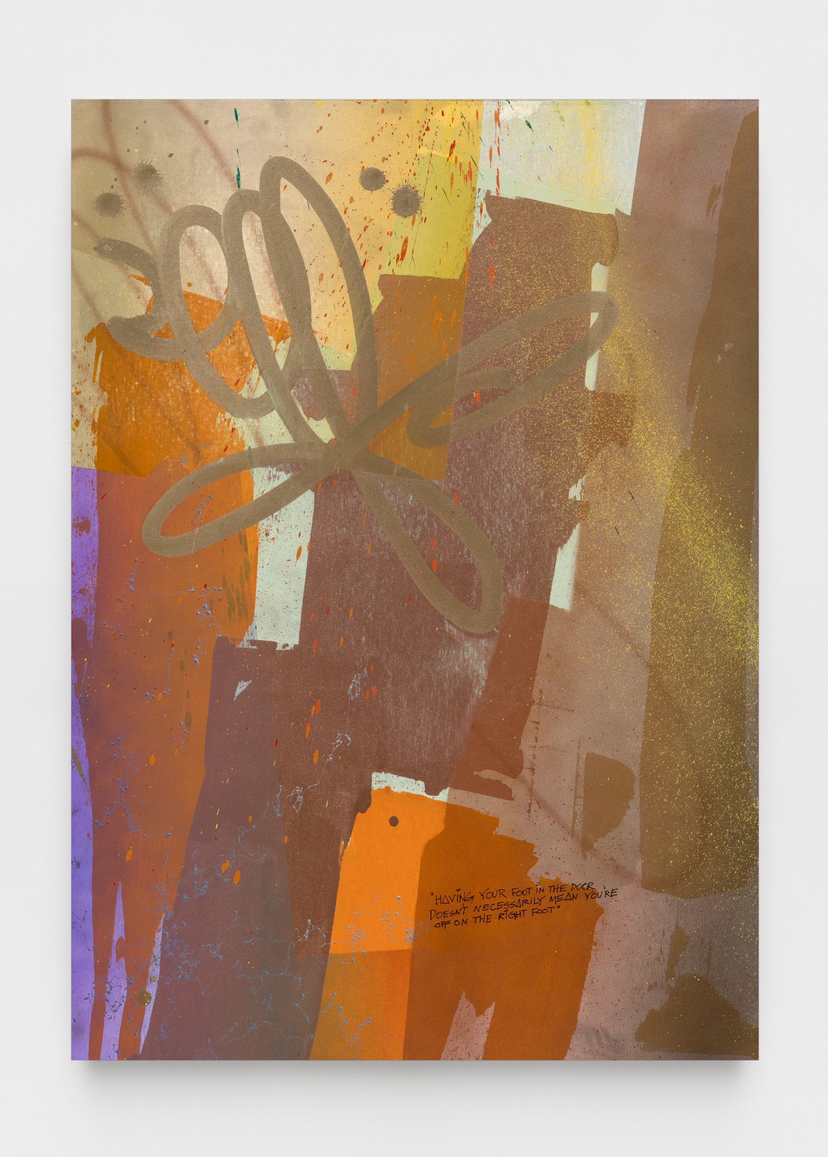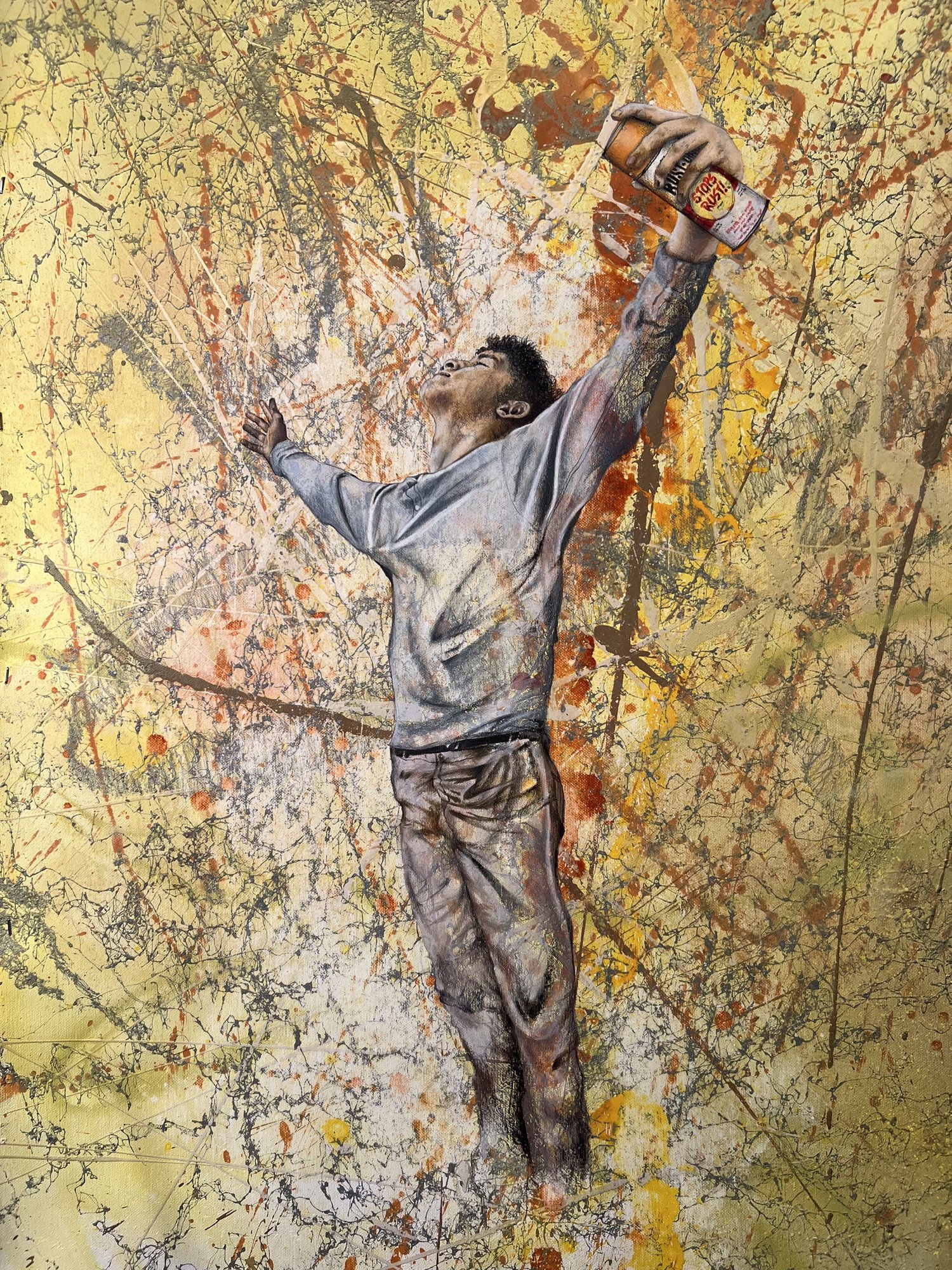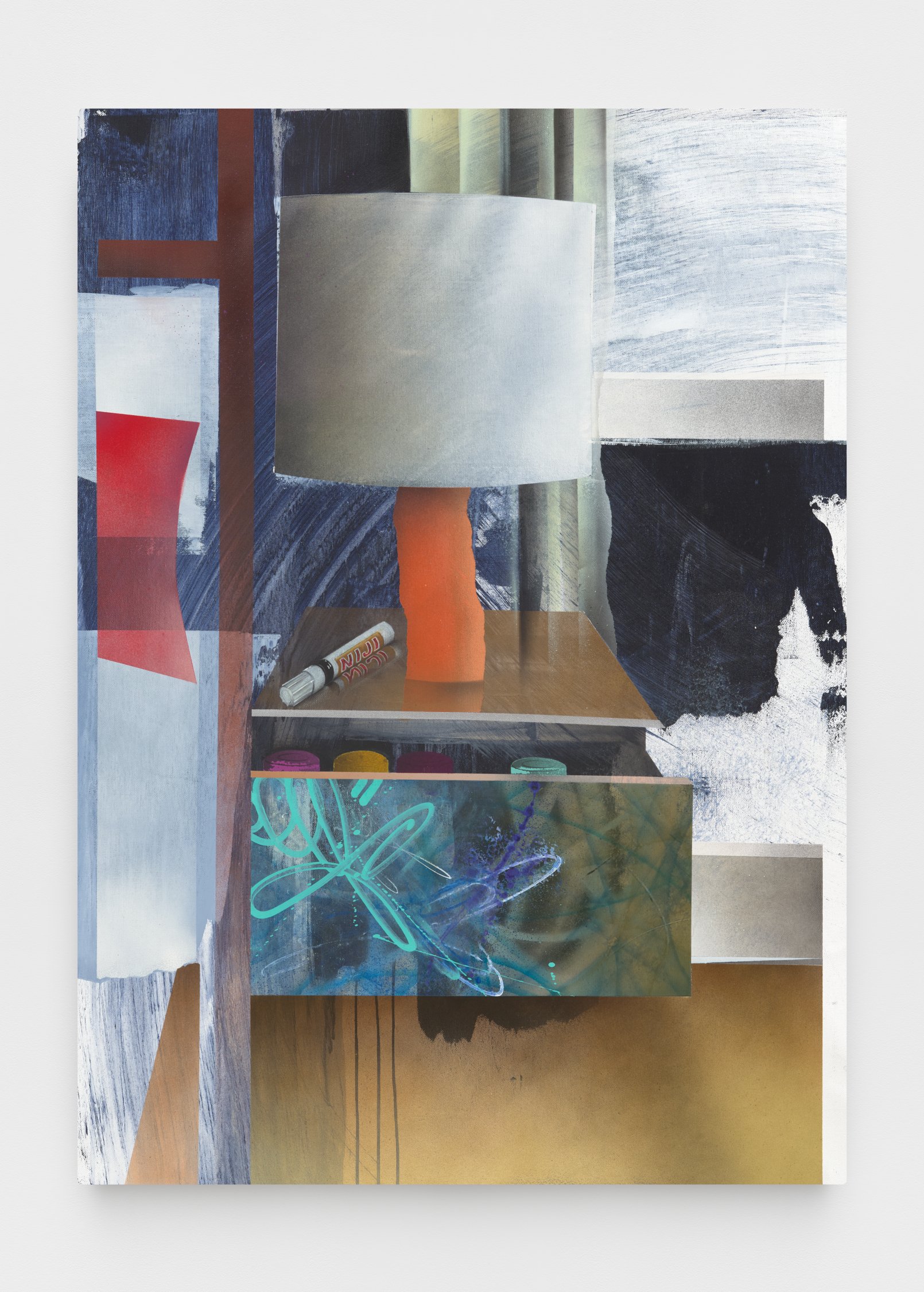The exhibition will feature a new series of SPIT paintings, deriving their name from the act of priming a paint marker. These works straddle the line between gallery and street, pairing tags and graffiti writing with bold, expressionist painting. Quiñones honors the tools of the artform, using spray paint and paint markers to create layered abstract compositions. On this 50th anniversary, the artist also looks back to his beginnings making art on the run, in one work depicting his own spray cans hidden away in the days when the city was his studio.